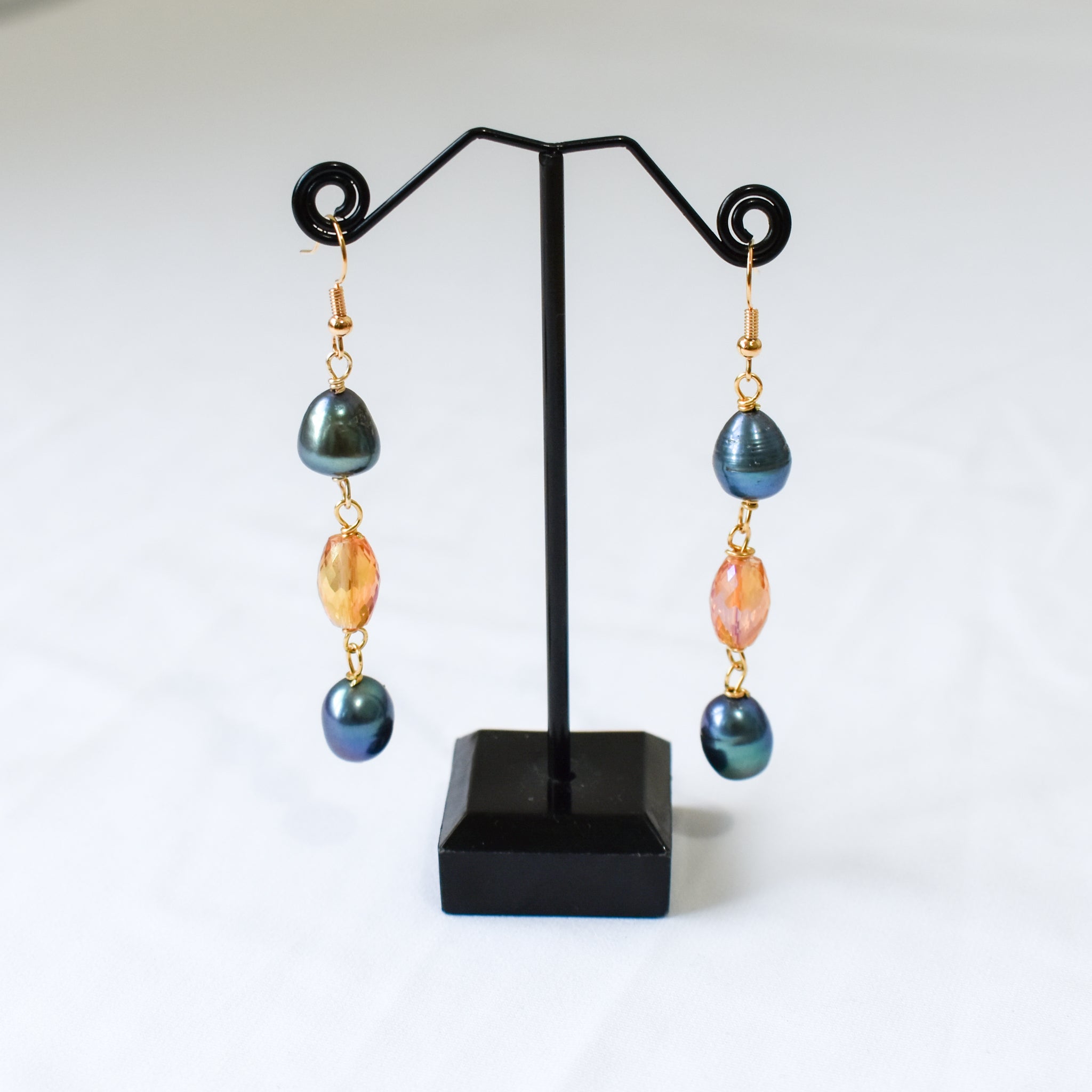GIOVANNA EARRINGS - Natural Black Drop Pearl Earrings With Gem - Multicolour Variety