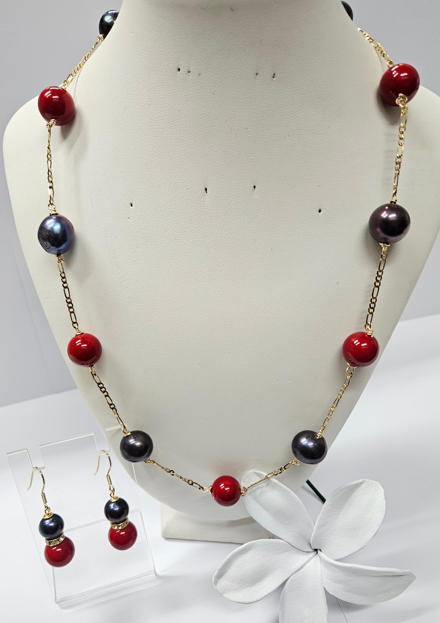 TAIMANE: Natural Black Pearls blend with Red Swarovski Pearls Set!