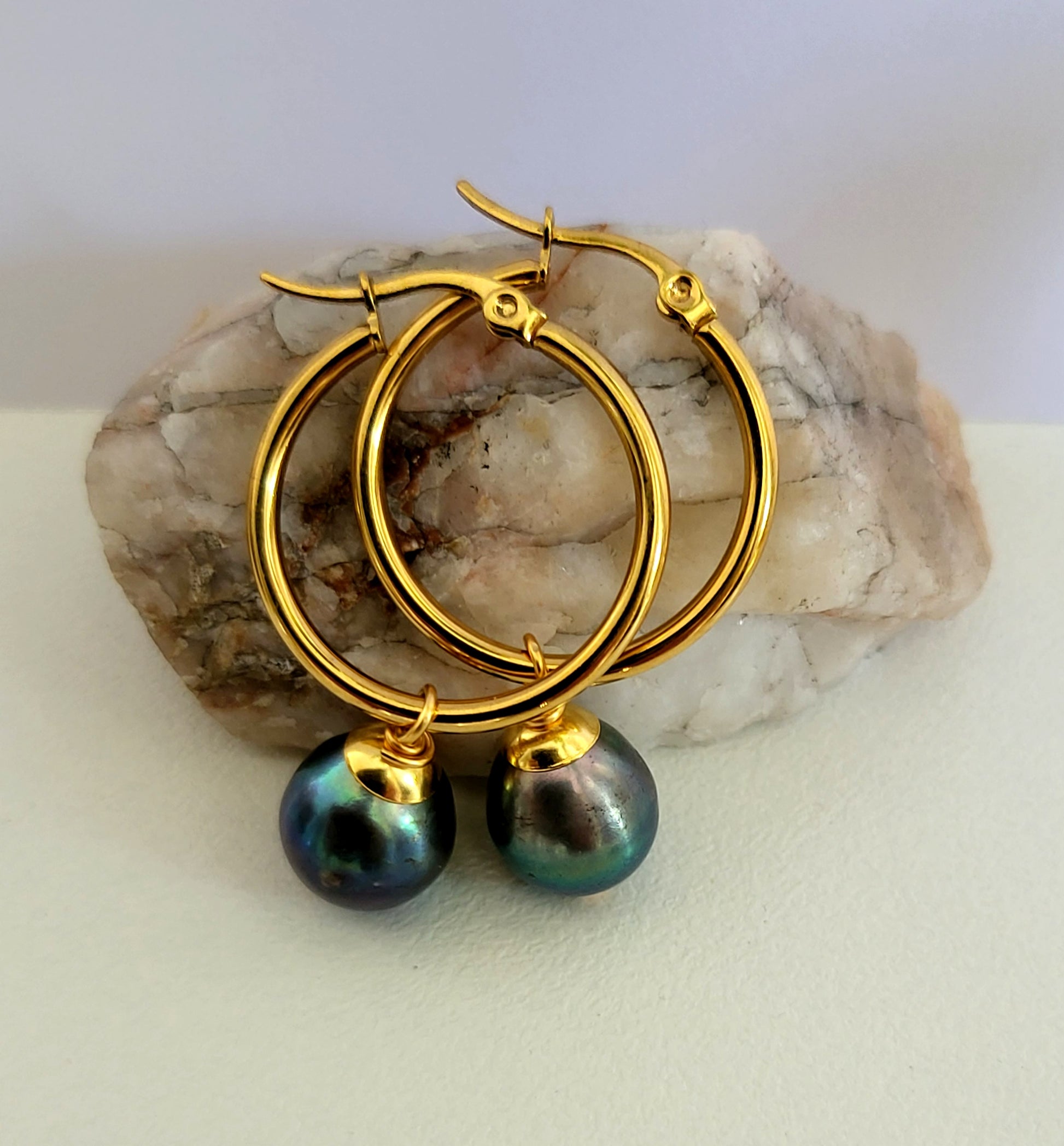 These Leilani earrings are paired with oval-shaped genuine Tahitian pearls that showcase the natural beauties of the ocean's gems. Wear this pair of gold-filled hoop earrings to a special occasion or for an everyday look.