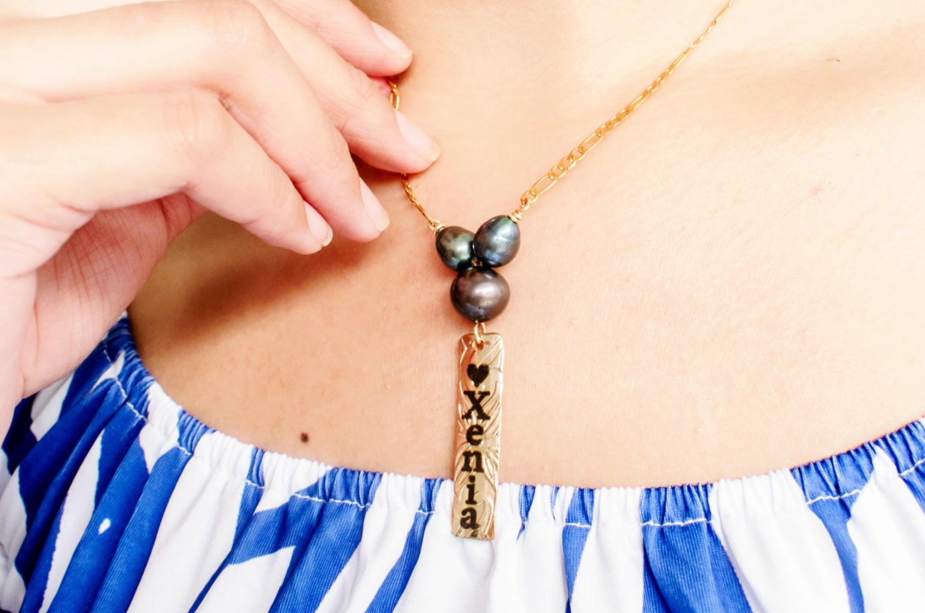 TERIANA – Custom Personalised Necklace with 3 Natural Black Pearls